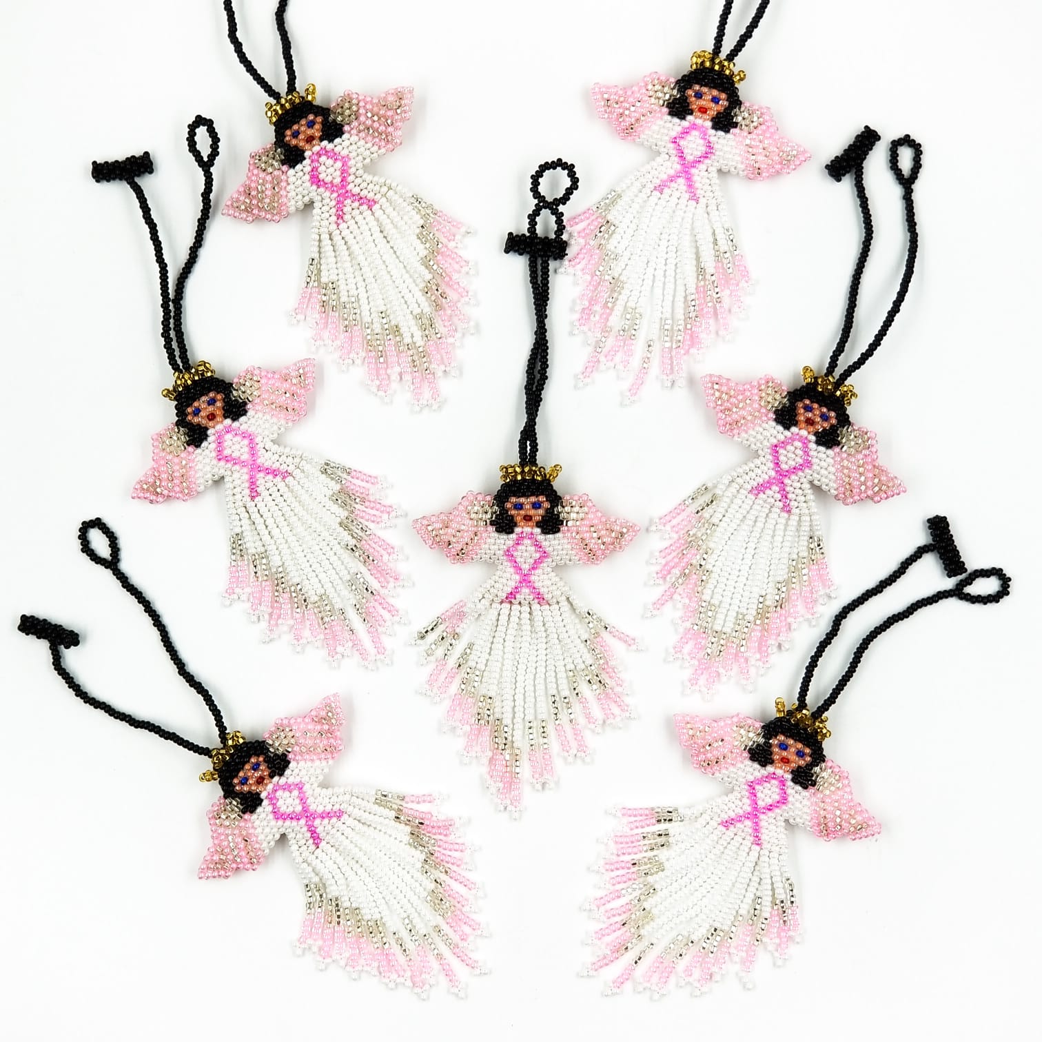 Beaded Ornament - Pink Ribbon Angel